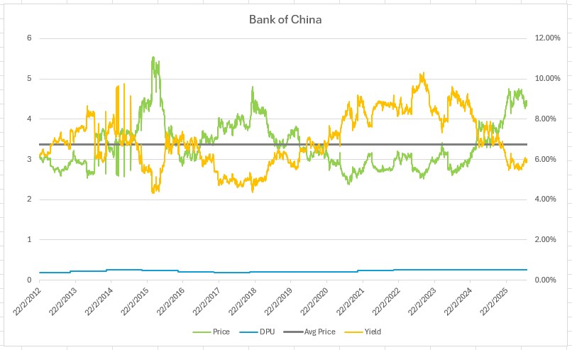 For 3988 (Bank of China), although the P/B ratio looks reasonable, based on the price-yield chart it appears to be overpriced at the moment.