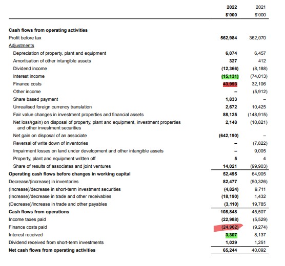 In the 2022 AR, pg 37, cash flow, https://ir.listedcompany.com/tracker.pl?type=5&id=266632&m=60f827a3d5fbea9a02925ec584e8b238677301a48338b97896c24fdbd2d26df2&redirect=https%3A%2F%2Fstraitstrading.listedcompany.com%2Fnewsroom%2F20230406_185215_S20_LHYSVO96UCSKSI0G.1.pdf.